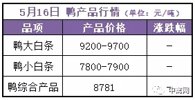 5月17日主产区重点监测规模冷藏企业白条、半鸭类出厂价格不动,近期生猪价格连创新低,叠加五一节后肉类消费清淡,部分鸭分割副产单品出厂价格小幅下调。经销商环节观望情绪加重,以消化库存为主,补货谨慎。