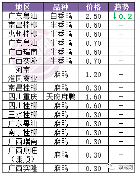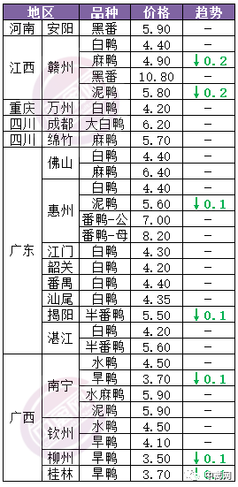 | 广西 | 南宁(水鸭) | 4.50 | - |