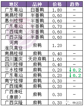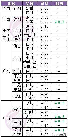 | 广西 | 南宁(水鸭) | 4.80 | -0.30 |