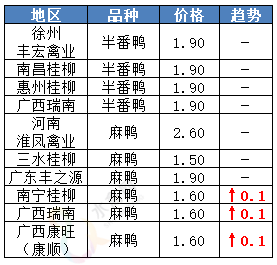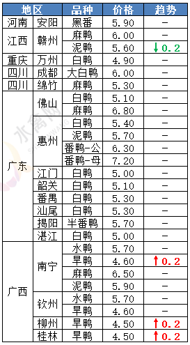 | 广西 | 南宁(水鸭) | 5.70 | - |
