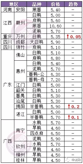 | 广西 | 南宁(水鸭) | 5.70 | - |