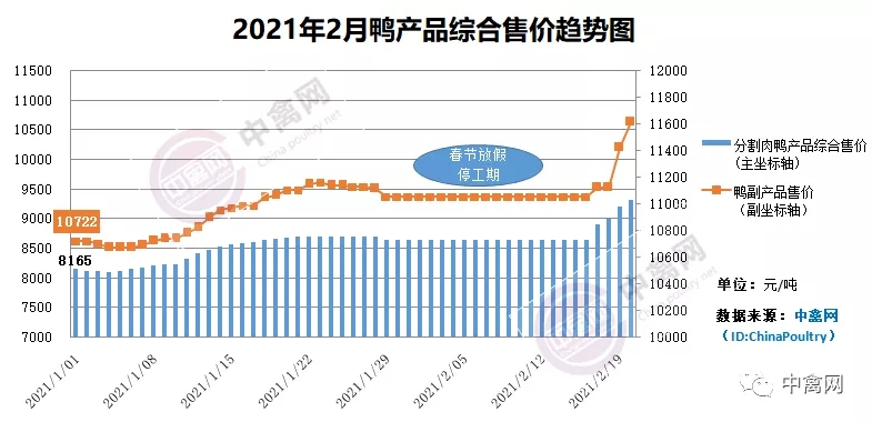 8月12日监测数据,目前鸭分割产品综合售价参考8581元/吨,环比7月下跌7.61%;鸭副产品售价10389元/吨,环比上月下跌3.15%。本月鸭产品价格运行趋势如下:(定期更新)