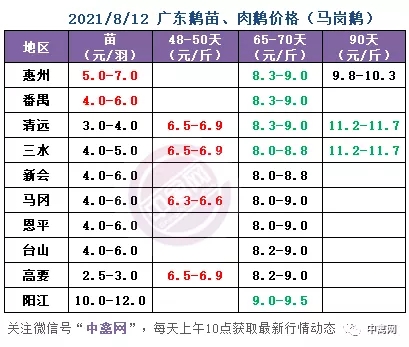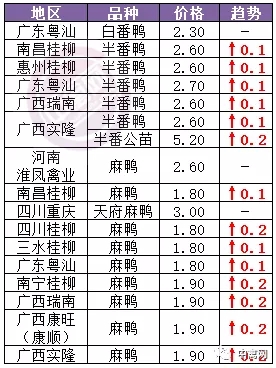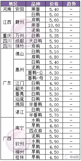 | 广西 | 南宁(水鸭) | 5.90 | - |