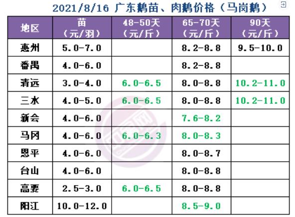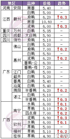 | 广西 | 南宁(水鸭) | 6.00 | 0.10 |