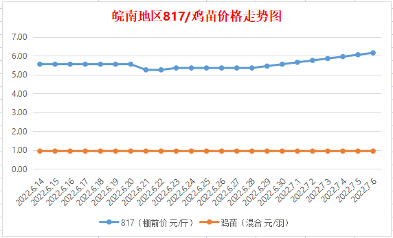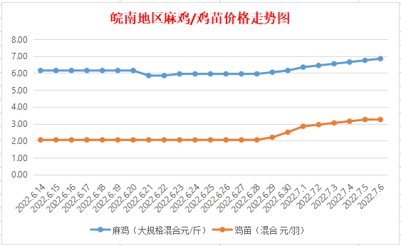 鸡病专业网消息:2022年7月5日-6日皖南地区817-麻鸡行情最新走势