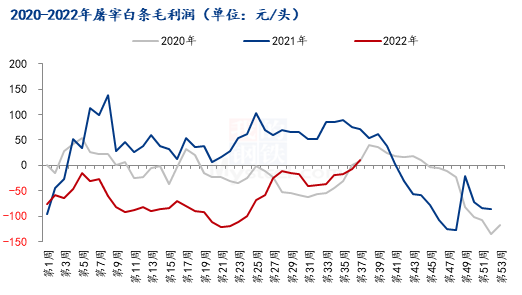据Mysteel农产品监测数据显示,第37周重点样本屠宰企业开工率22.34%,较上周下跌1.40个百分点,同比下跌3.02个百分点。虽近期屠宰企业开工受节后惯性,有所回落,但是进入9月后屠宰企业开工有较为明显的提升,且随着天气逐渐转凉及传统春节备货期的临近,后期市场需求还是有向好发展的空间。