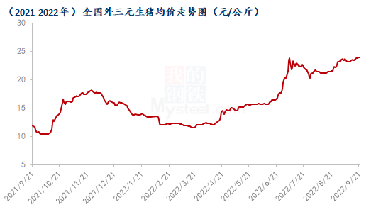 据钢联数据显示,中秋节前10天,全国外三元生猪出栏均价由23.24元/公斤涨至23.40元/公斤,之后又回落至23.08元/公斤。但节后猪价强势上涨,仅出现一日短暂跌价。主要原因如下: