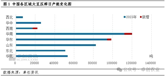 山东作为中国大豆压榨产能排名第三位的大区及单省份排名第一的市场,整体来看豆粕供应相对充足,豆粕现货价格常年处于全国低位区间。卓创资讯数据统计显示,2023年山东地区大豆压榨日产能为82650吨,全国占比为17.93%。而据卓创资讯调研了解到,2024年4月某企业二期6000吨/日产线已经投产,且仍存在两家企业共计10000吨/日等在建产能及部分计划新增产能。出于集团战略发展等原因,未来山东市场大豆压榨产能将进一步增加,对应的豆粕供应能力也将稳步提升。随着山东豆粕市场上游竞争愈加激烈,货物质量差异较小前提下,为争夺市场份额,面对下游销售过程中价格优势或成为大豆压榨企业考虑的重要因素。同时当价格足够低时,套利空间的打开也将促成新的贸易流向。