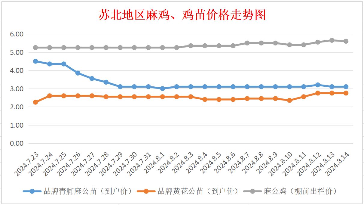 苏北地区麻鸡、鸡苗价格走势图(图源:鸡病专业网)