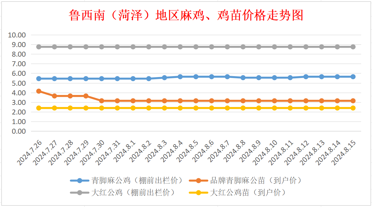 8月15日鲁西南(菏泽)地区麻鸡、鸡苗价格行情
