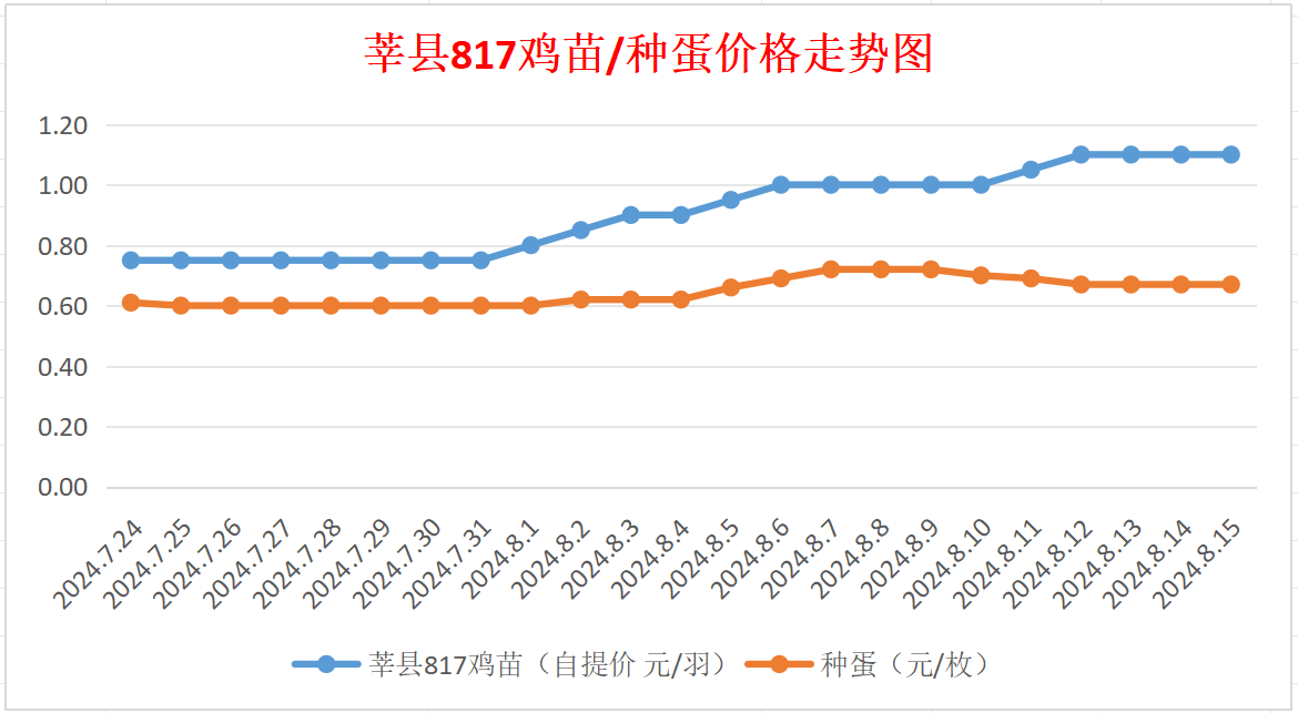 817鸡苗(混合):报价自提1.10元/羽。(稳)