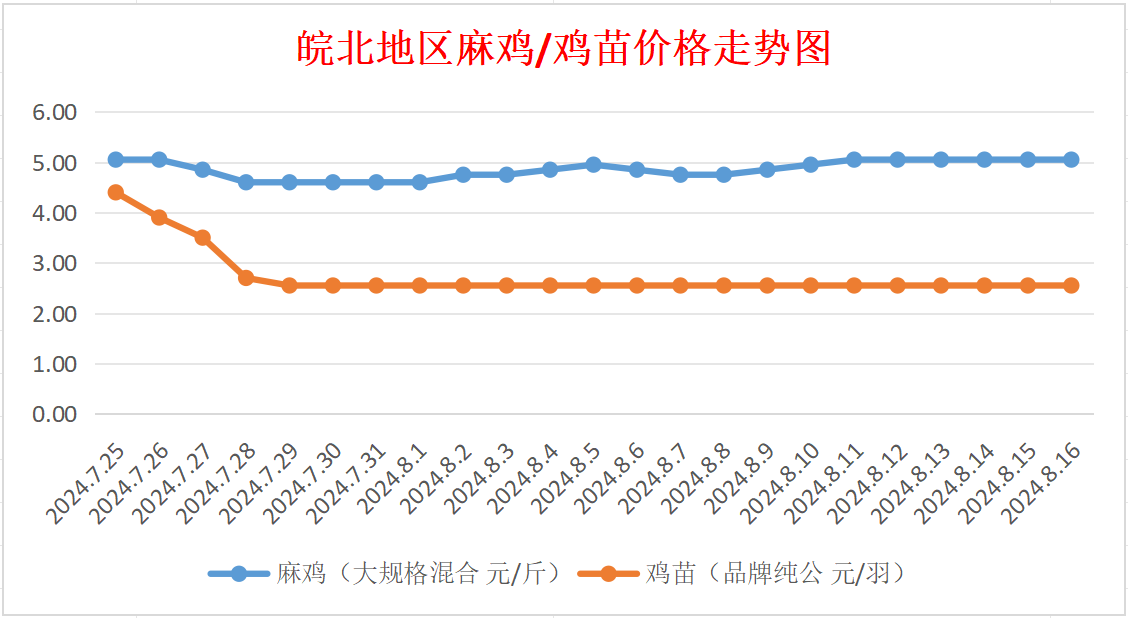 鸡病专业网独家信息:2024年8月16日皖北地区817-麻鸡行情最新走势