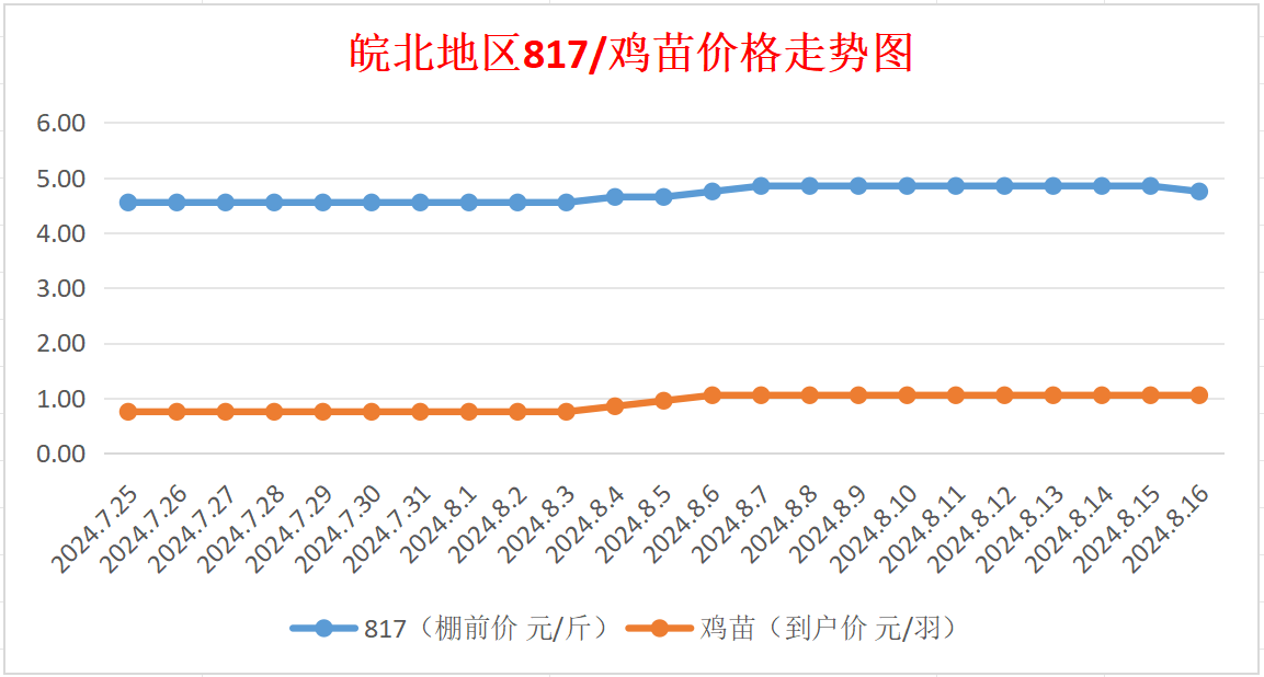 皖北地区817/鸡苗价格走势图(来源:鸡病专业网)