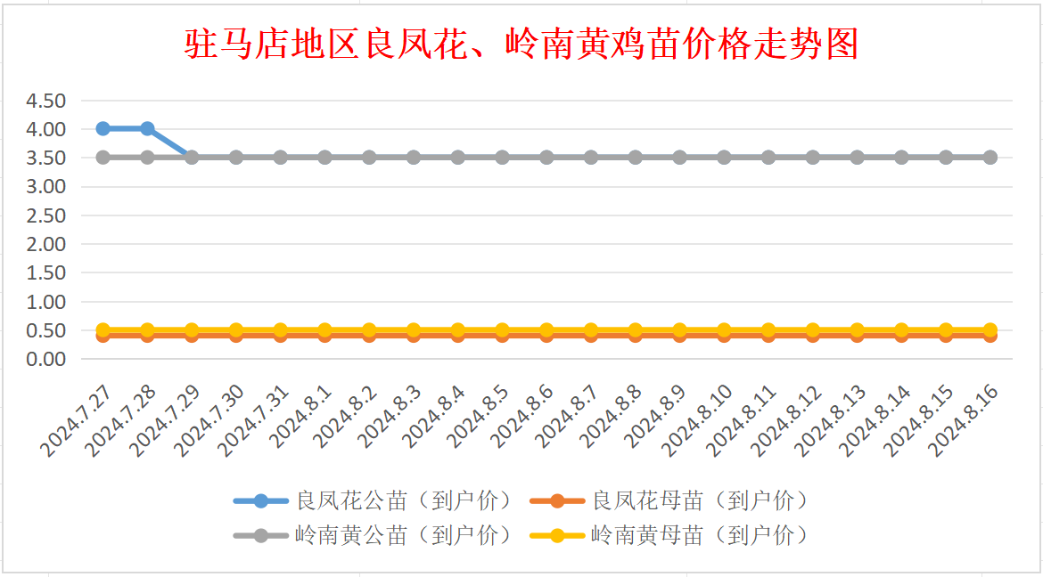 良凤花鸡苗:价格稳定,公苗到户价3.00-4.00元/羽,母苗到户价0.40元/羽,稳。
