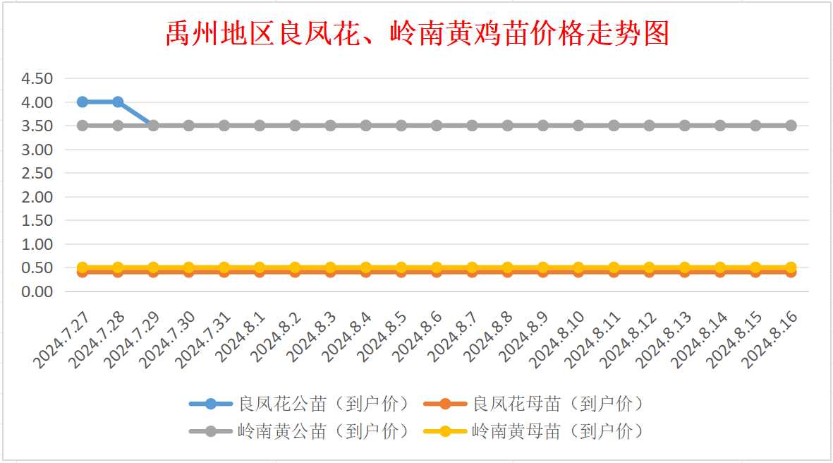 8月16日禹州地区良凤花、岭南黄鸡苗价格行情