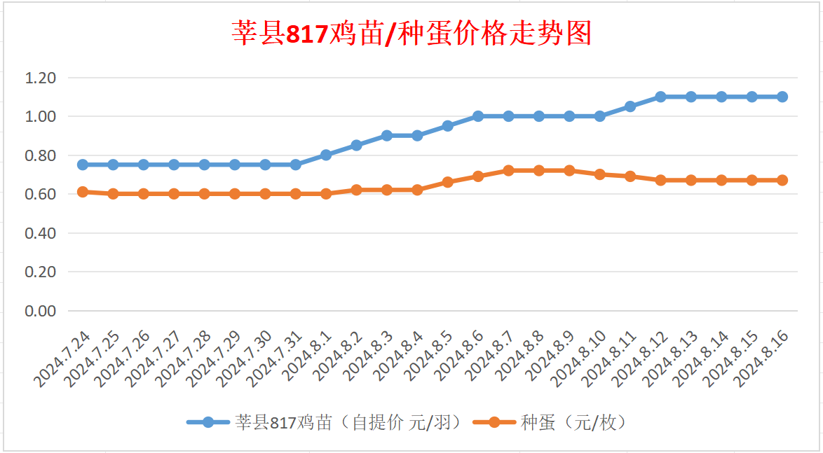 817鸡苗(混合):报价自提1.10元/羽。(稳)