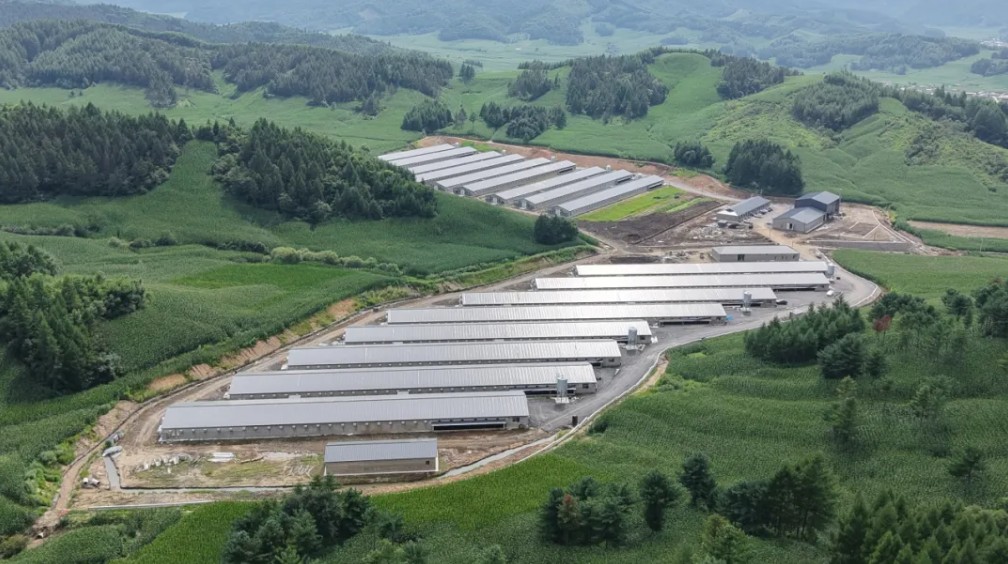 该项目位于清原县夏家堡镇邱家窝棚村,总投资1.02亿元,占地141亩,是集标准化、自动化于一体的大型种鸡繁育基地。项目建设17栋标准化鸡舍及饲料仓库、办公用房、防疫消毒室等配套设施,每栋鸡舍面积达3000平方米,配备国内先进的AC2000全自动环控系统、自动产蛋箱、乳头饮水器等设备,通过湿帘降温、“两高一低”地面平养等技术,实现全密闭式科学饲养。