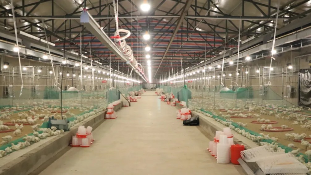 养殖场严格落实环保要求,建立五级过滤沉淀排水系统,确保排放水达标。投产后不仅为当地提供50多个就业岗位,人均年收入达6万元,更将通过产业链带动效应,推动我县肉鸡养殖业标准化升级,为夏家堡镇经济发展注入新动能。