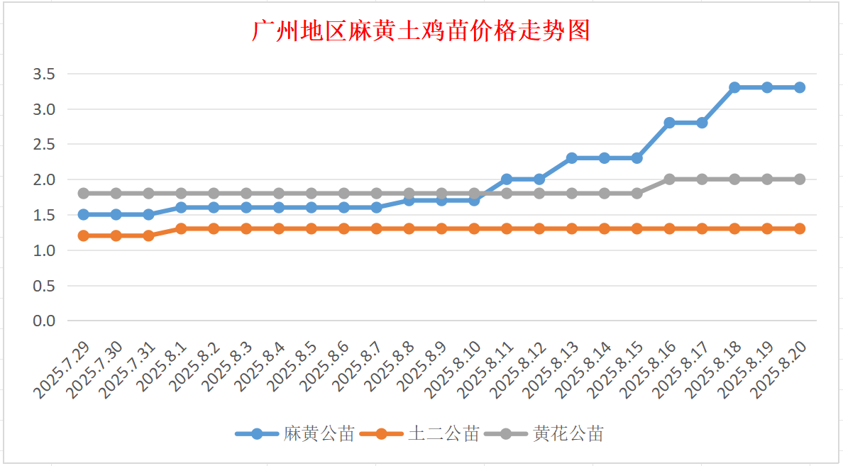 8月20日广州地区麻、黄、土鸡苗价格行情