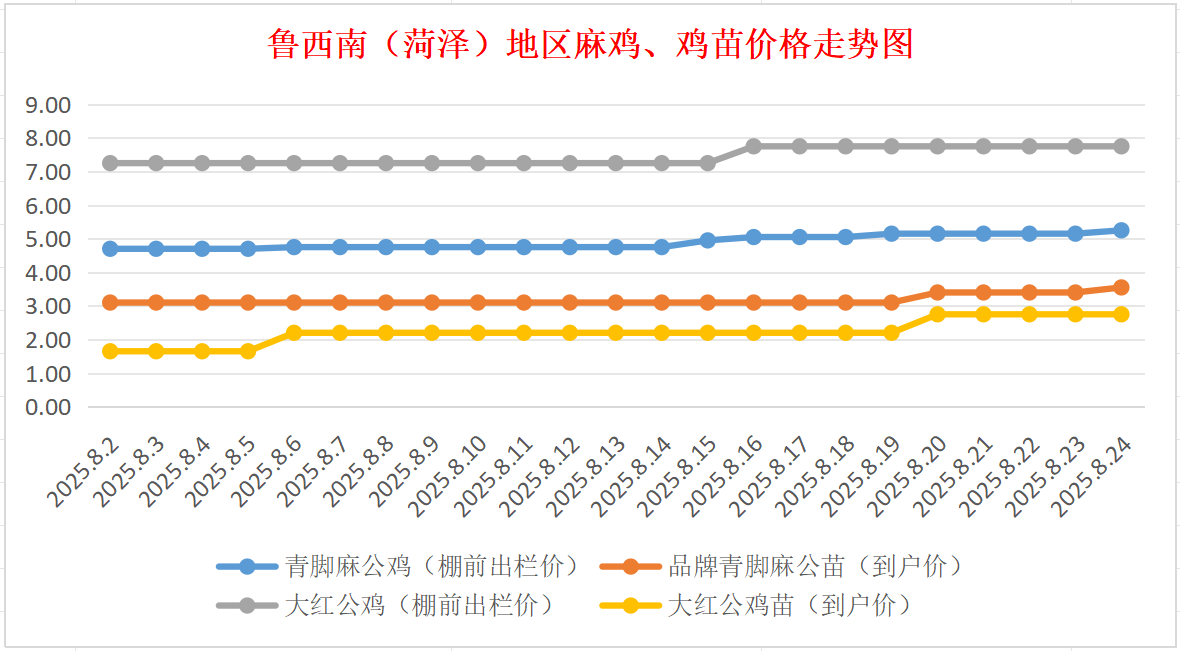 菏泽地区麻鸡、鸡苗价格走势图(来源:鸡病专业网)