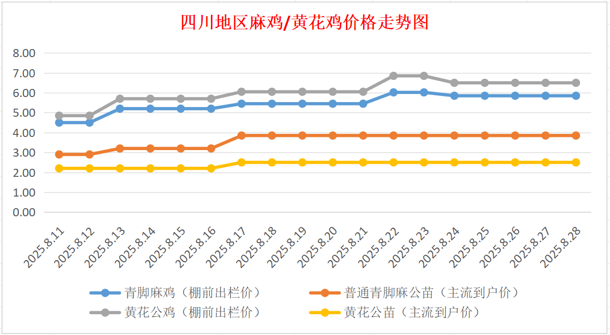 四川地区麻鸡/黄花公价格走势图(来源:鸡病专业网)