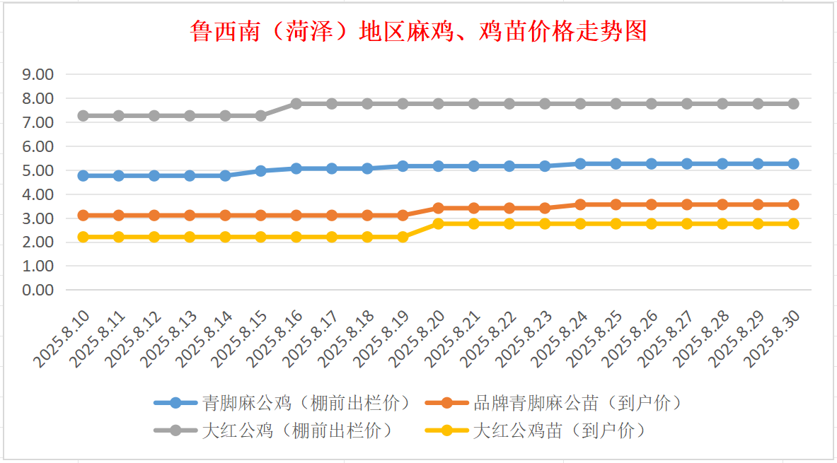 菏泽地区麻鸡、鸡苗价格走势图(来源:鸡病专业网)