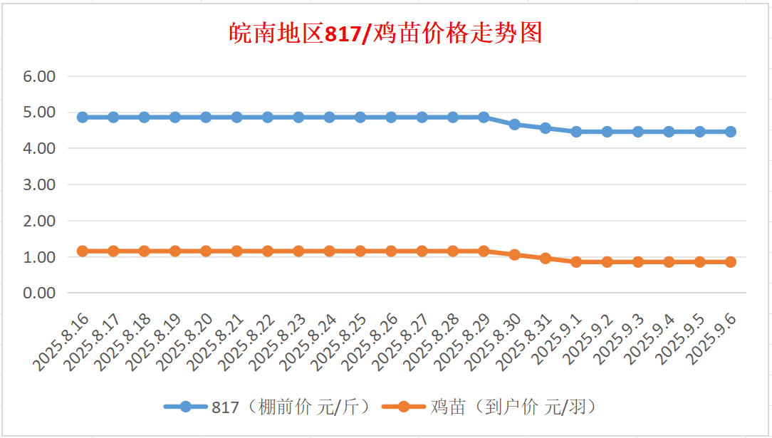 鸡病专业网独家信息:2025年9月6日皖南地区817-麻鸡行情最新走势