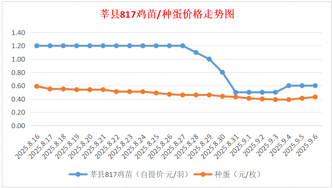 817鸡苗(混合):报价自提0.60元/羽。(稳)