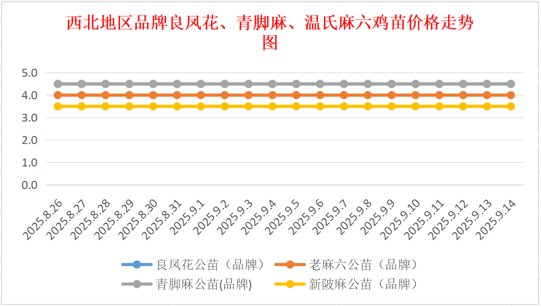 品牌新陂麻:价格稳定,到户价公苗4.50元/羽,稳。