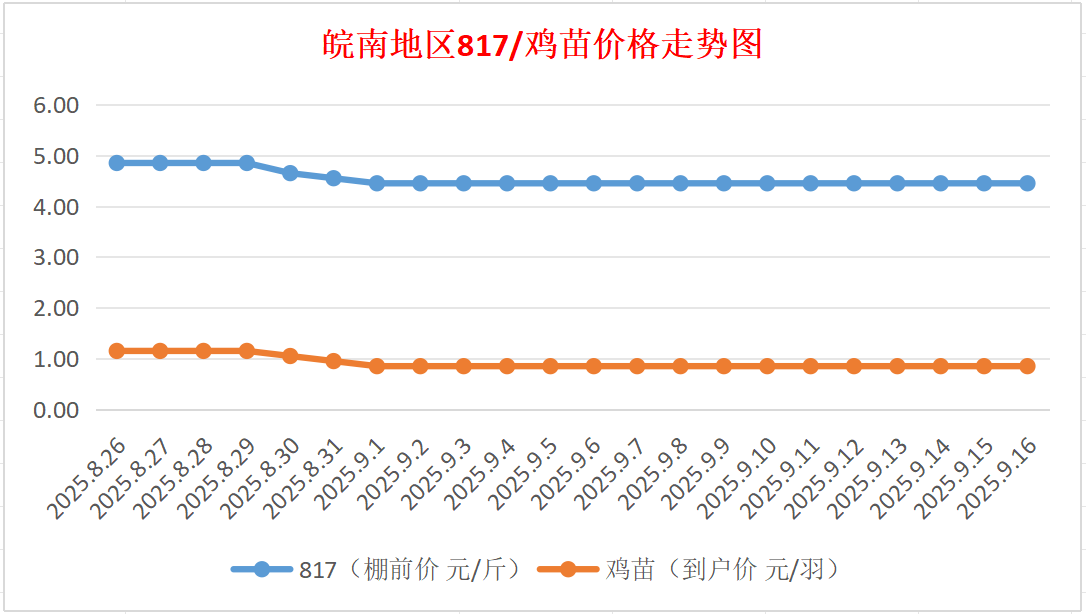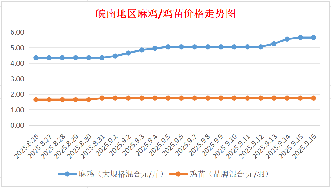 鸡病专业网独家信息:2025年9月16日皖南地区817-麻鸡行情最新走势