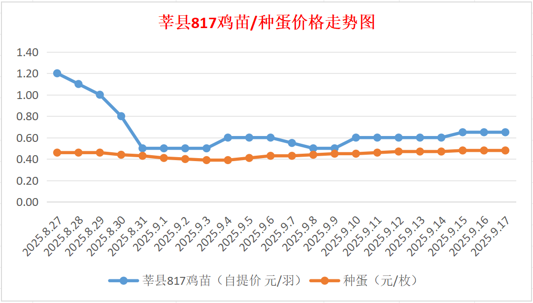 817鸡苗(混合):报价自提0.65元/羽。(稳)