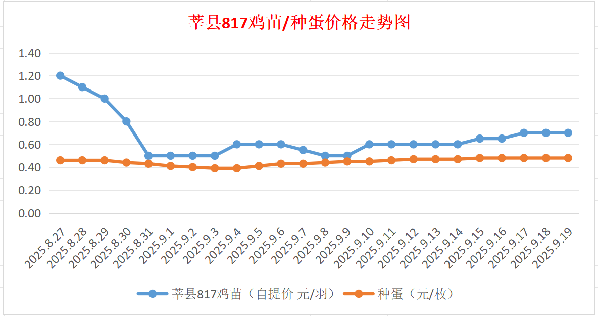 817鸡苗(混合):报价自提0.70元/羽。(稳)