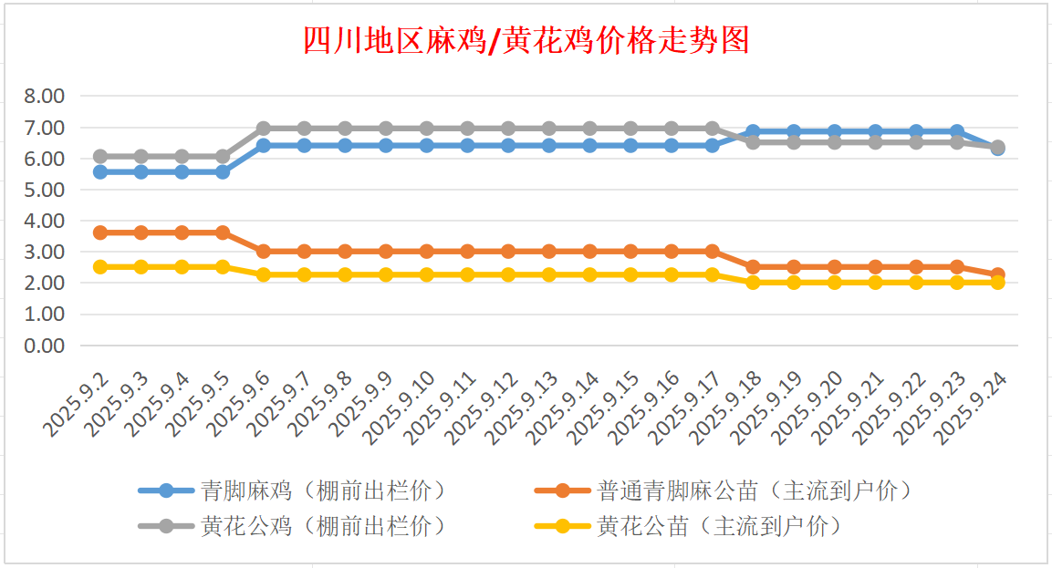 四川地区麻鸡/黄花公价格走势图(来源:鸡病专业网)