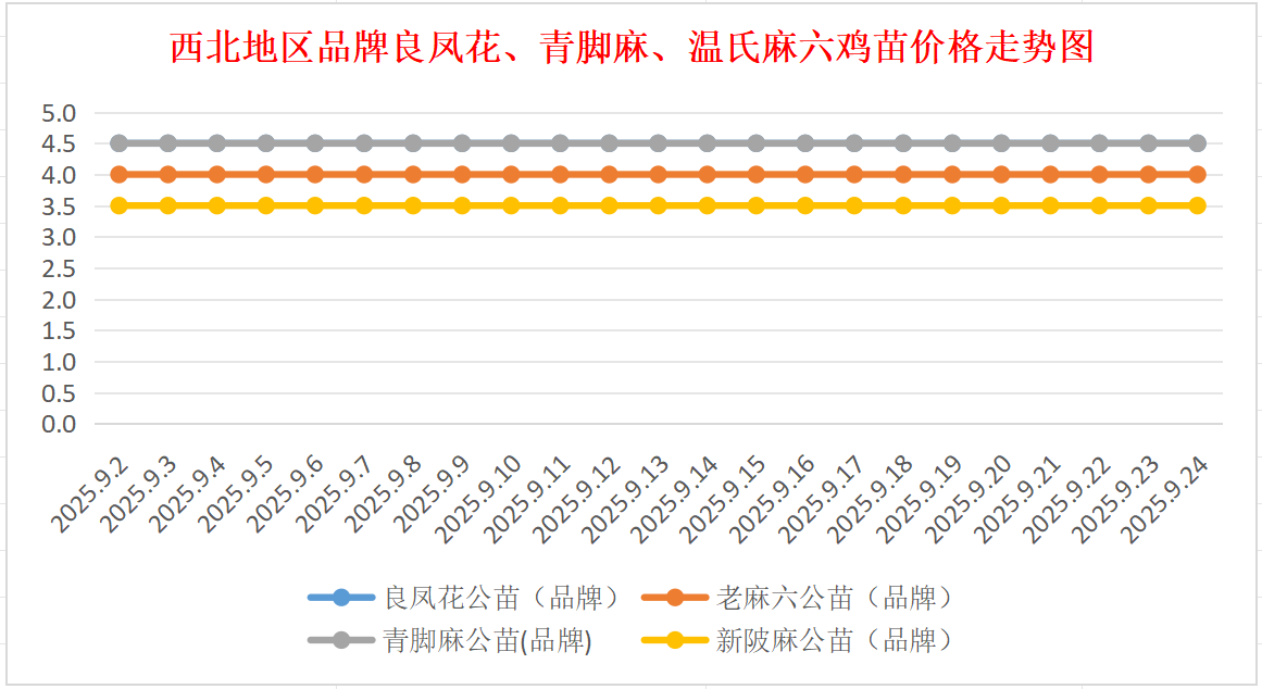 品牌新陂麻:价格稳定,到户价公苗4.50元/羽,稳。