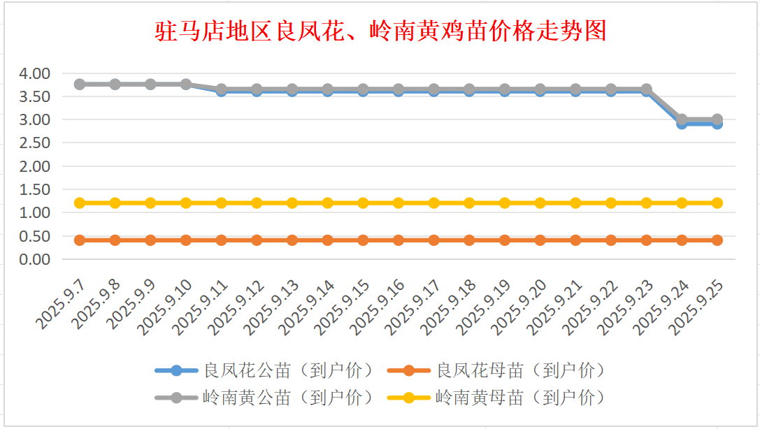 9月25日驻马店地区良凤花、岭南黄鸡苗价格行情