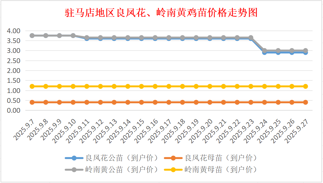 9月27日驻马店地区良凤花、岭南黄鸡苗价格行情