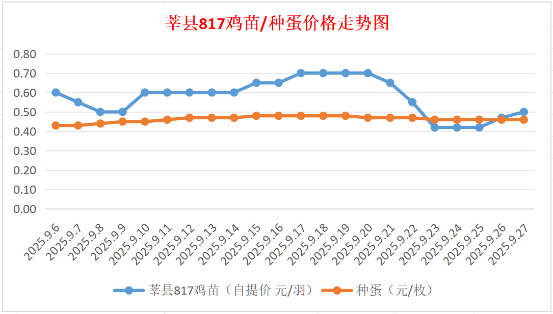 种蛋:昨日种蛋0.45-0.46元/枚。