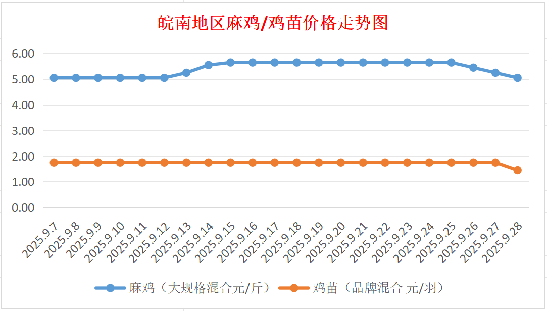 鸡病专业网独家信息:2025年9月28日皖南地区817-麻鸡行情最新走势