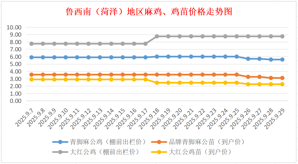 菏泽地区麻鸡、鸡苗价格走势图(来源:鸡病专业网)