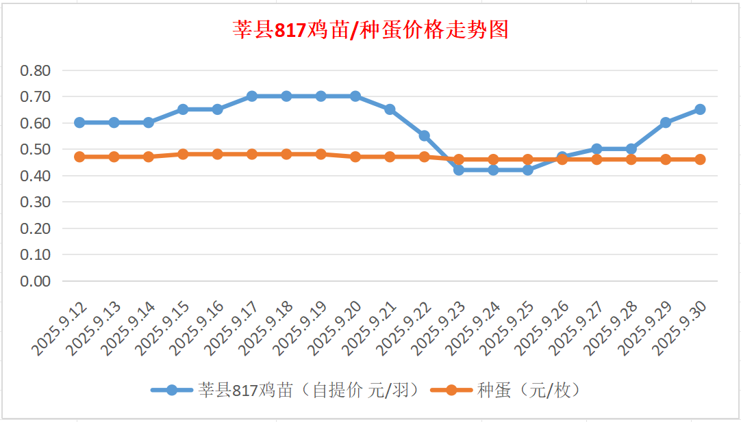 种蛋:昨日种蛋0.45-0.46元/枚。