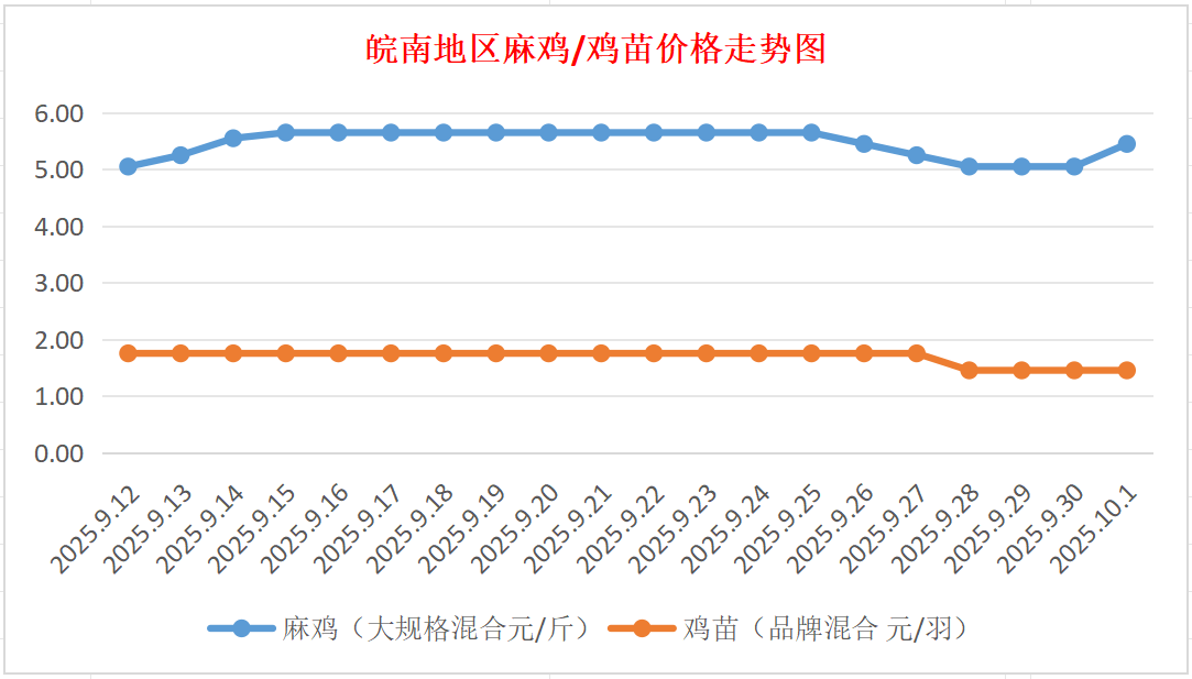 鸡病专业网独家信息:2025年10月1日皖南地区817-麻鸡行情最新走势