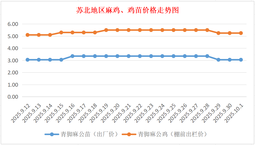 苏北地区麻鸡、鸡苗价格走势图(图源:鸡病专业网)