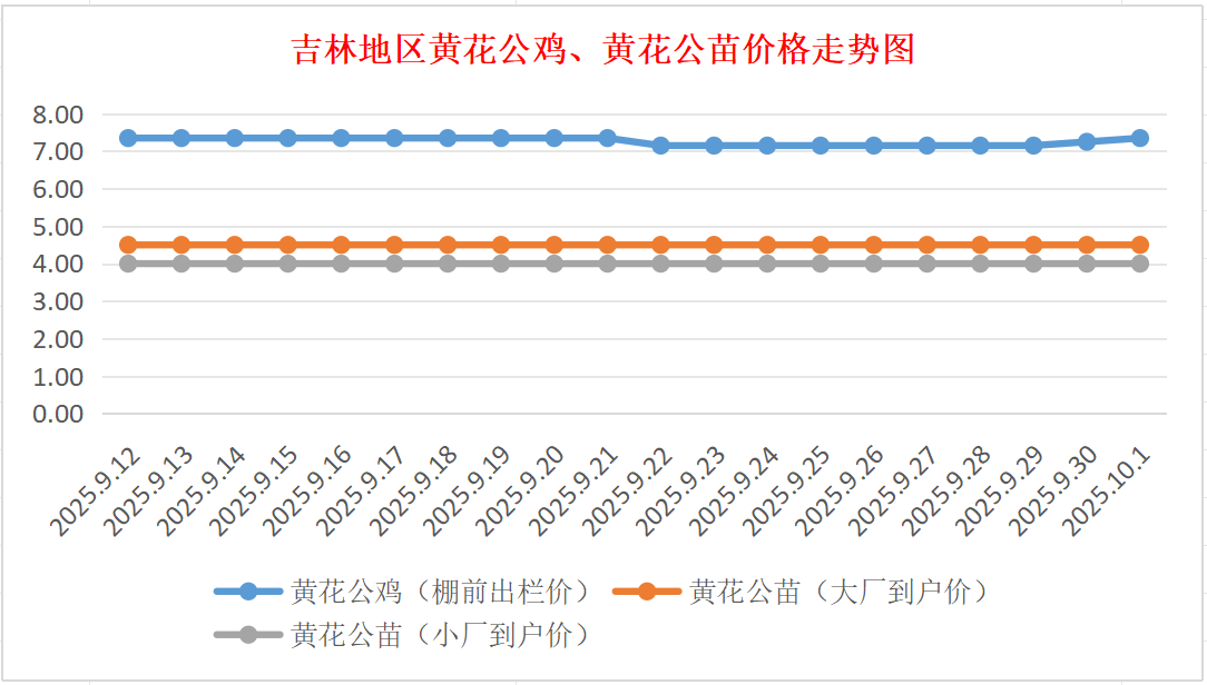 黄花公苗:价格稳定,大厂到户价4.50元/羽,小厂到户价4.00元/羽,稳。