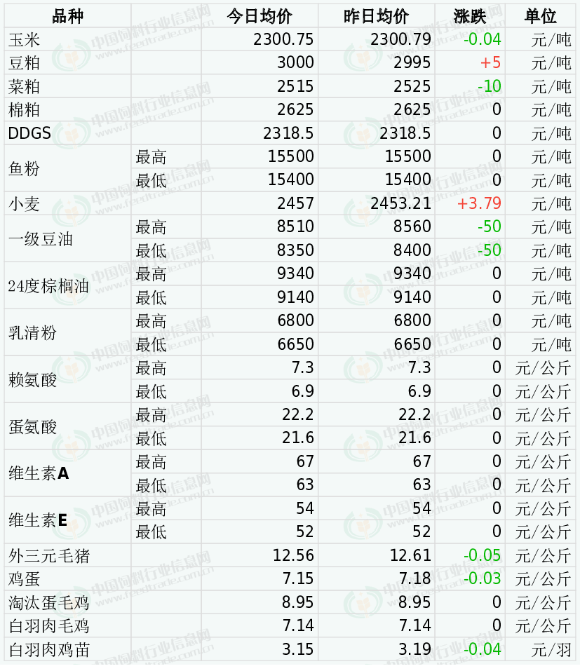 白羽肉毛鸡价格稳定。市场供应较为充足,屠企基本处于满宰状态,但冻品市场走货欠佳,需求端表现不佳,无法对价格起到有力的支撑作用,供需双向利空,短期内市场供需状况未得到明显改善,预计短期肉鸡价格窄幅震荡,反弹乏力。今日主产区山东白羽肉毛鸡均价6.85元/公斤,与昨日价格持平;辽宁均价7.10元/公斤,与昨日价格持平;主销区江苏均价8.00元/公斤,与昨日价格持平。