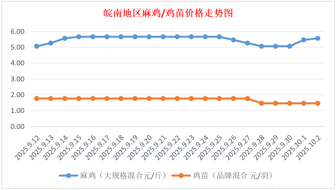 鸡病专业网独家信息:2025年10月2日皖南地区817-麻鸡行情最新走势