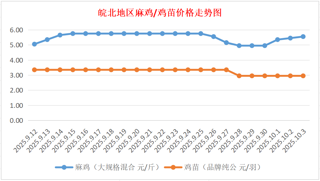 鸡病专业网独家信息:2025年10月2日皖北地区817-麻鸡行情最新走势