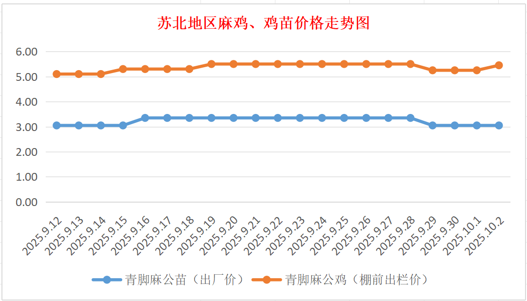苏北地区麻鸡、鸡苗价格走势图(图源:鸡病专业网)