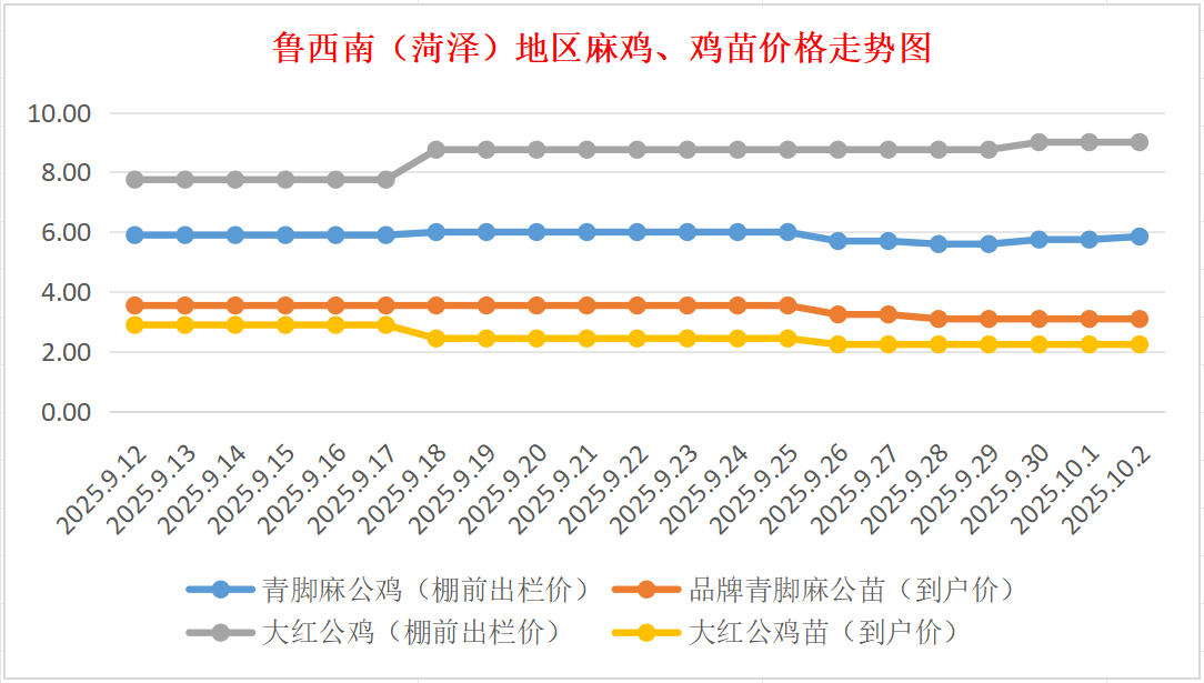 菏泽地区麻鸡、鸡苗价格走势图(来源:鸡病专业网)