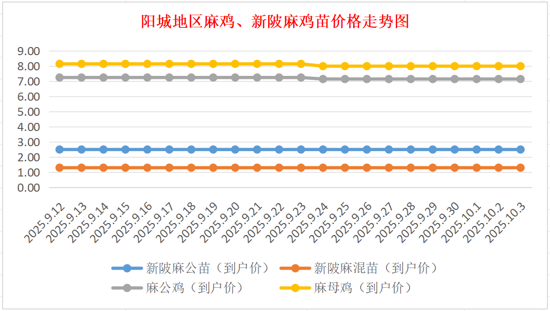 阳城地区麻鸡、新陂麻鸡苗价格走势图(来源:鸡病专业网)