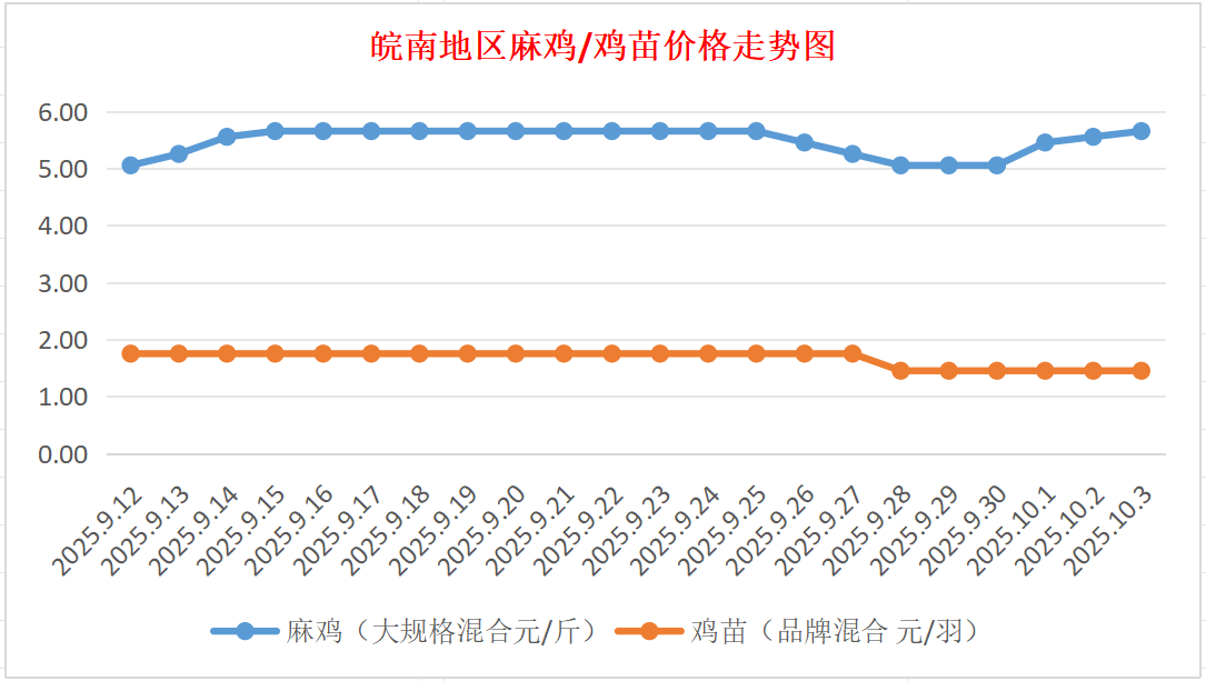 鸡病专业网独家信息:2025年10月3日皖南地区817-麻鸡行情最新走势